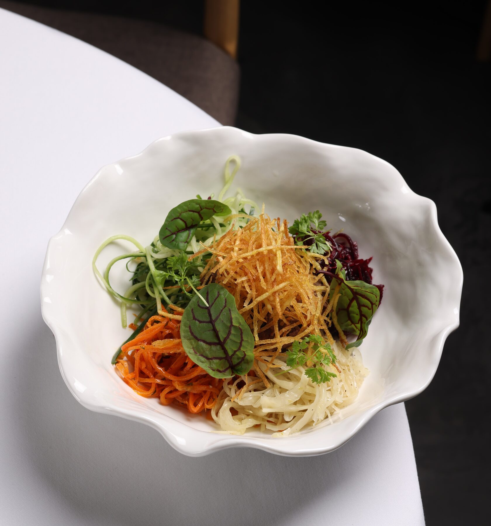 сАЛАТ С РОСТБИФОМ, ПАПОРОТНИКОМ И МАРИНОВАННОЙ ЧЕРЕМШОЙ